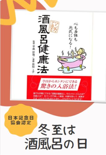 こんにちは♪ 早島BOOKSHOPです。 ━━━━━━━━━━━━━━━ 本日は冬至ですね! 冬至は「酒風呂の日」というのはご存じですか? 酒風呂の日は日本記念日協会認定の記念日です。 冬至・春分・夏至・秋分の日が酒風呂の日です。 四季の節目に「湯治」として酒風呂に入り…